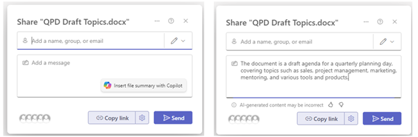 In recent days, we’ve seen the Copilot prompt appear when you share a document from Teams or SharePoint, although weirdly, not yet from Word itself.