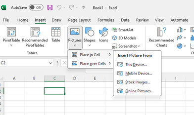 To insert a picture in a cell, follow these steps: