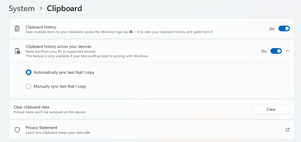 There are new features in Windows backup to sync your preferences, including sound. That reminds me that if you use more than one Windows device, then the ability to copy and paste between them is amazing So, if you haven’t turned it on yet, then don’t wait – go into your Windows settings, find clipboard and turn sync on!
