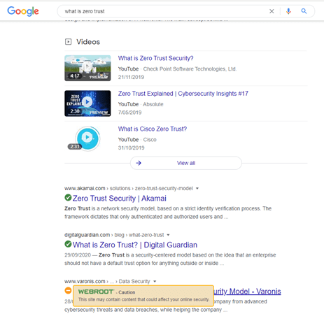 Tools like the URL curation we include in KARE for Security help you identify potential risks – ironically, a search on Zero-Trust itself resulted in at least one ‘dodgy’ site which, as expected, our KARE URL curation software warned us about.